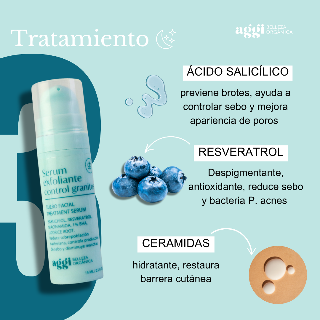 Tratamiento anti acné con BHA, bakuchiol, resveratrol 15ml