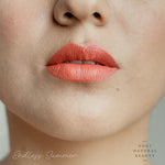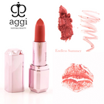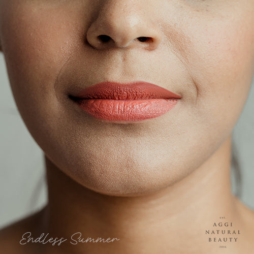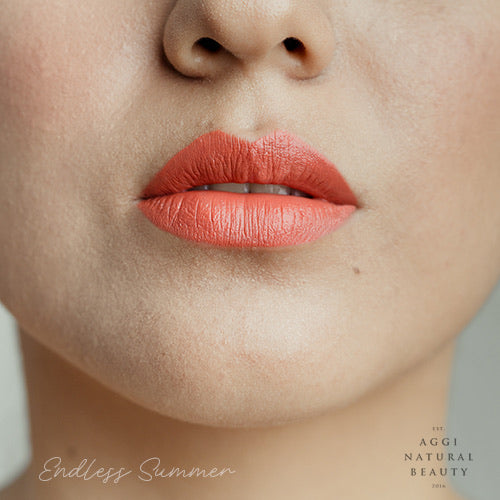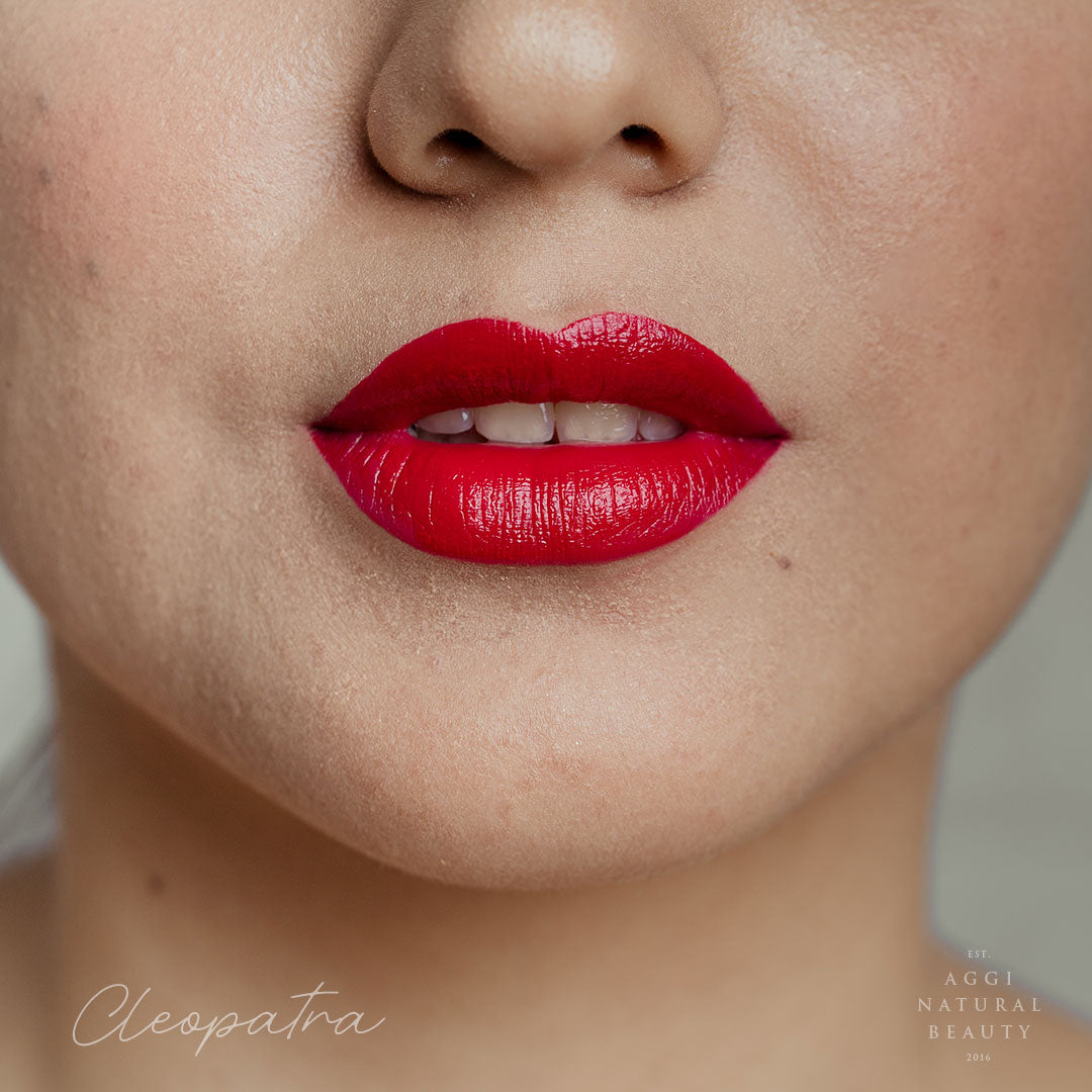 Contiene aceite de jojoba, escualano y ricino, vitamina E, manteca de cacao y karité orgánico, ceras veganas como candelilla y Carnauba en la medida perfecta para una textura cremosa y súper hidratante. Contiene óxidos de hierro, micas y algunos tonos más vibrantes (como el fucsia)  pueden contener algún colorante sintético no tóxico.